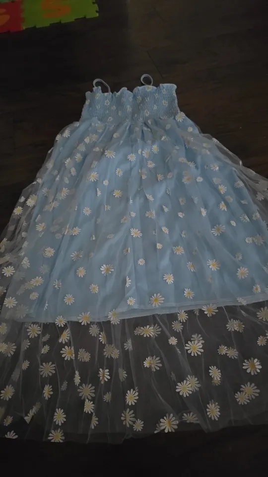 Women Fashion Floral Print Spaghetti Straps Mesh Party Dress